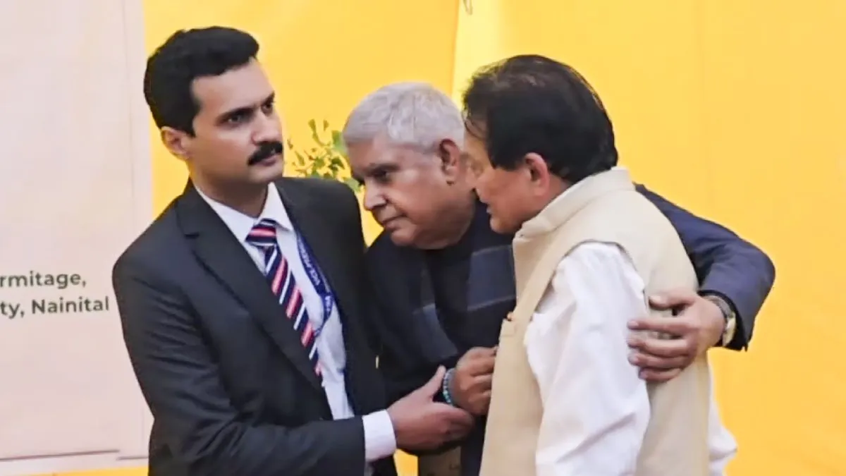 दरअसल, उपराष्ट्रपति धनखड़ समारोह में भाषण देने के बाद मंच से नीचे उतरे। इस दौरान वह अपने पुराने संसदीय सहयोगी महेंद्र सिंह पाल से मिले। दोनों ने एक-दूसरे को गले लगाया और ये भावुक पल था। लेकिन इसी बीच उपराष्ट्रपति अचानक पाल के कंधों पर ही बेसुध हो गए। मेडिकल टीम ने फौरन पहुंचकर उनकी हालत संभाली और उन्हें होश में लाया।